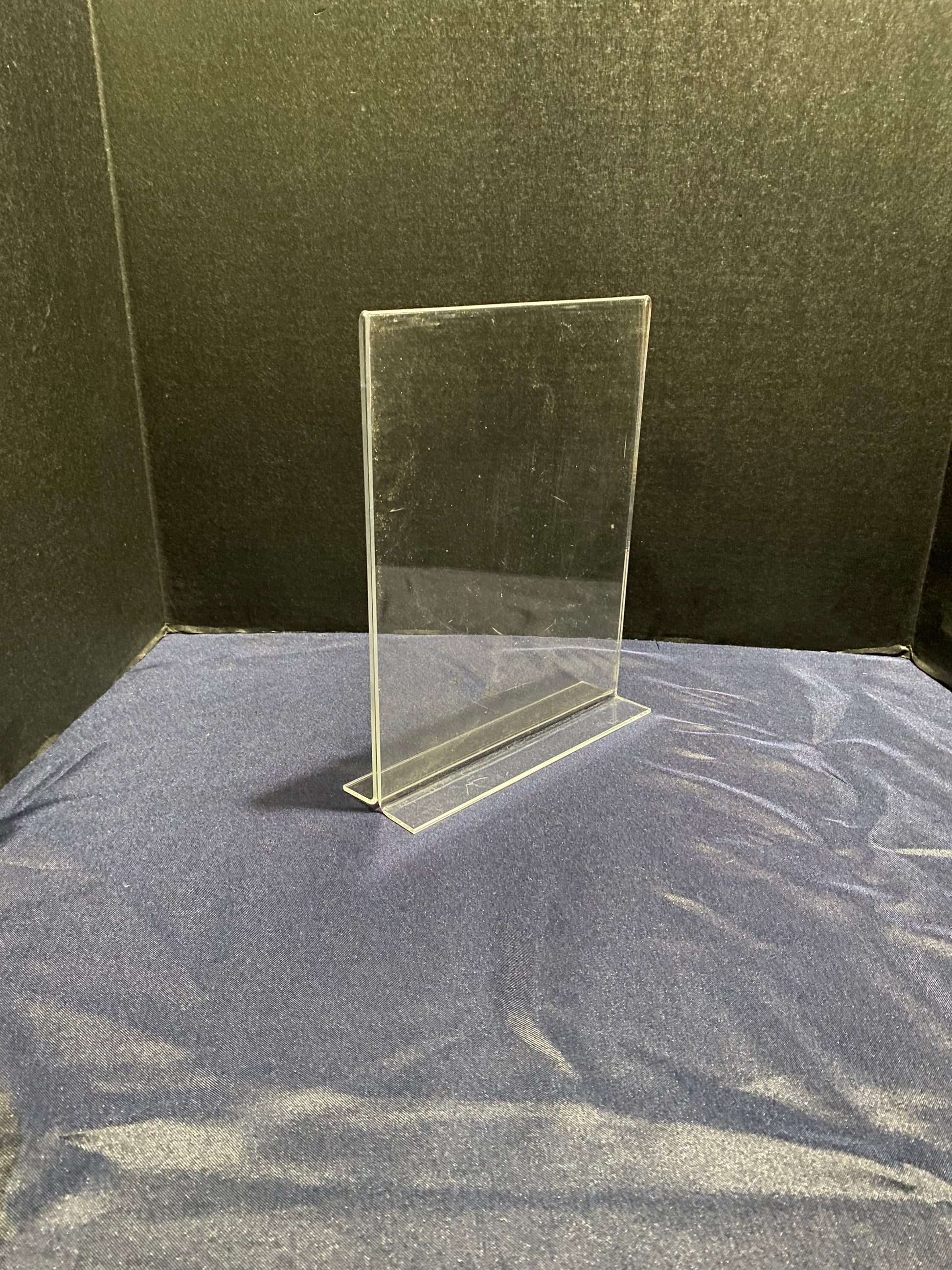 Display your signage with professional precision using this acrylic sign holder. Measuring 8 inches wide by 10 inches high, it's engineered for optimal visibility on countertops, shelves, and retail displays. The crystal-clear acrylic construction maintains transparency while providing sturdy support for menus, pricing, promotions, or informational materials. Its sleek design complements any environment—from restaurants and retail shops to offices and hospitality venues. Durable and easy to clean, this holder delivers reliable performance for everyday use.